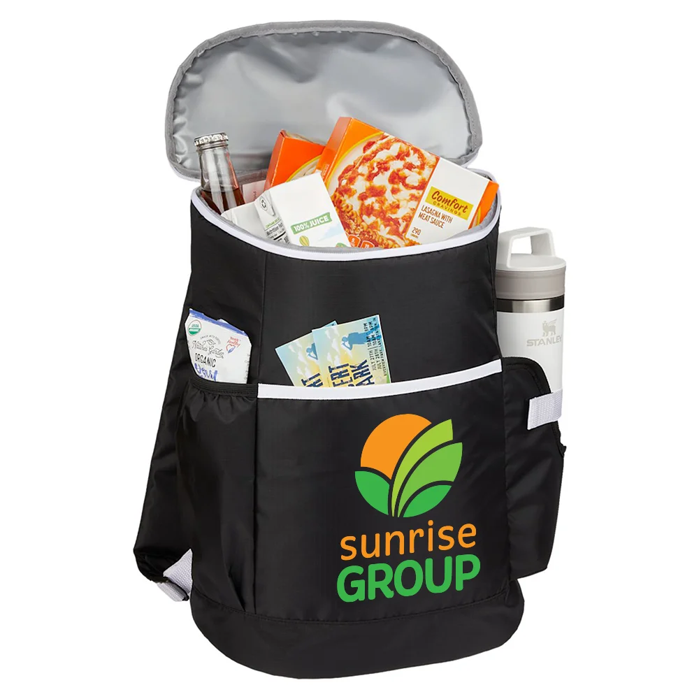 Black 24-Can Insulated Backpack Cooler Bag With Tumbler Pocket - Personalization Available