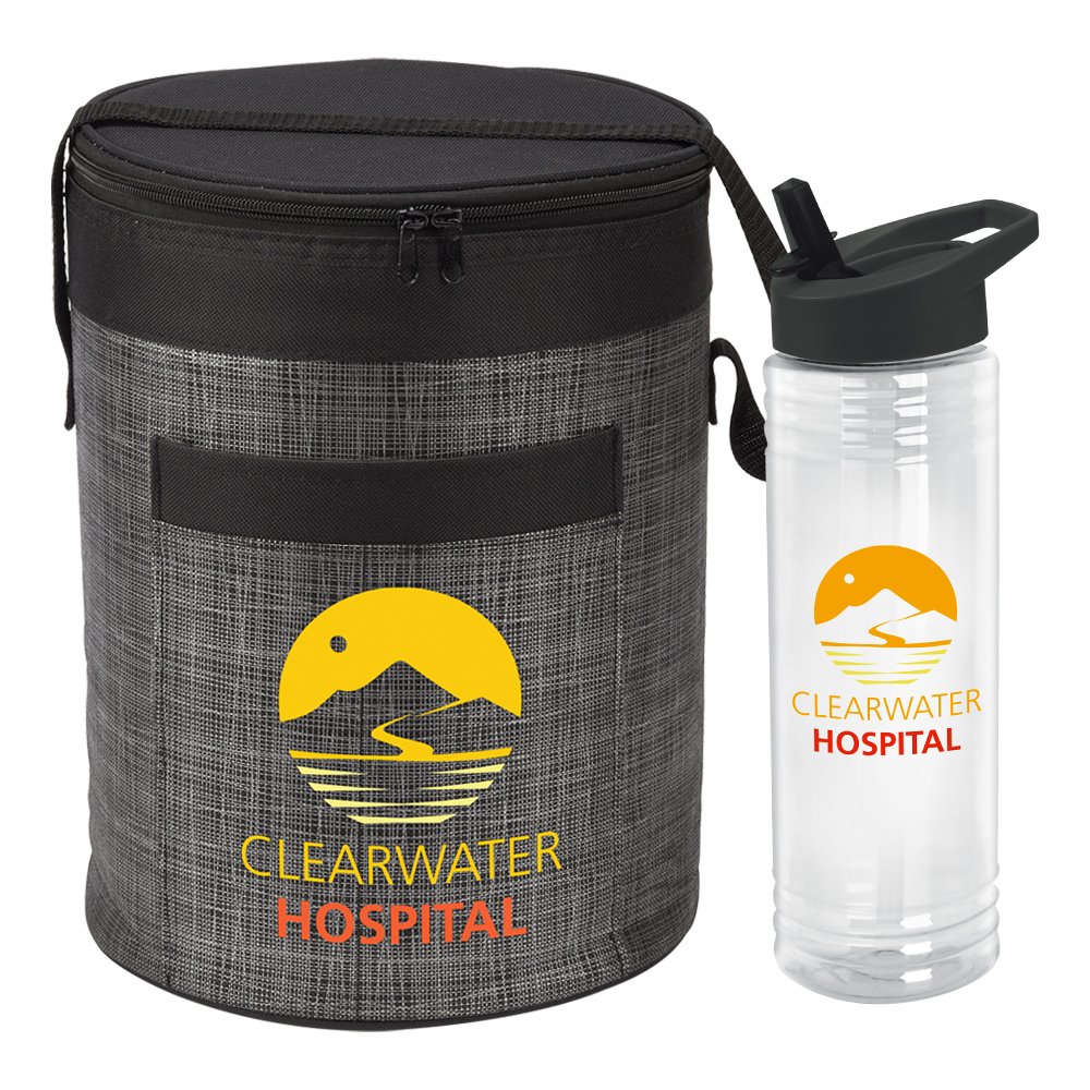 2-piece gift set includes: Brookville Barrel Cooler Bag & Solara Water Bottle 24 oz.