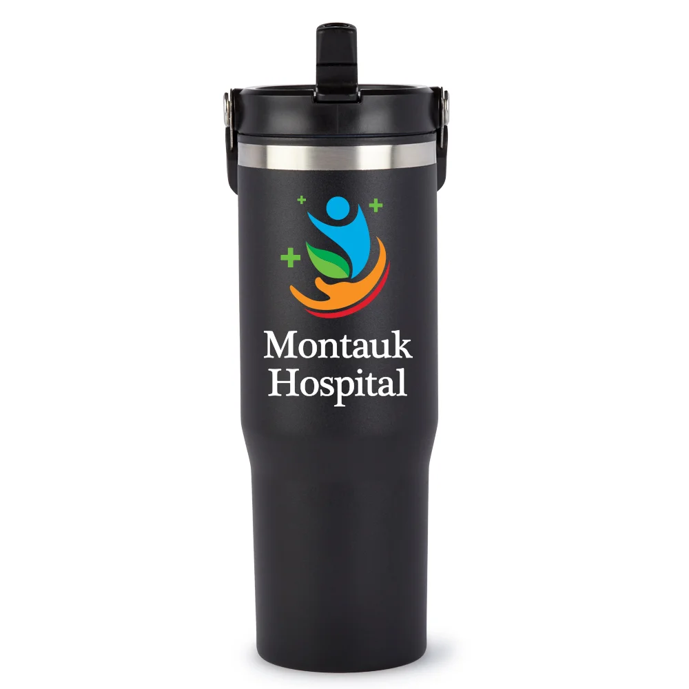 Personalized 30-oz. Bottle: Double-wall insulated: stainless-steel exterior, plastic liner; Secure lid for leak-resistant transport; Spout with built-in straw flips up to sip, snaps shut to minimize mess; Handle swings up for grab-and-go carry; Durable powder-coated finish resists scratches and stops condensation; Fits most car cup holders; Eco friendly; Reusable; BPA free; Note: Hand wash