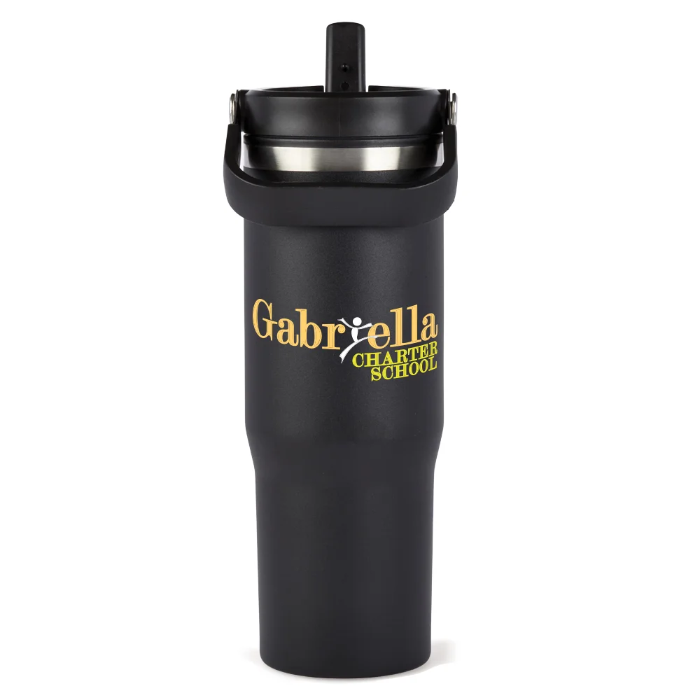 Personalized 30-oz. Bottle: Double-wall insulated: stainless-steel exterior, plastic liner; Secure lid for leak-resistant transport; Spout with built-in straw flips up to sip, snaps shut to minimize mess; Handle swings up for grab-and-go carry; Durable powder-coated finish resists scratches and stops condensation; Fits most car cup holders; Eco friendly; Reusable; BPA free; Note: Hand wash