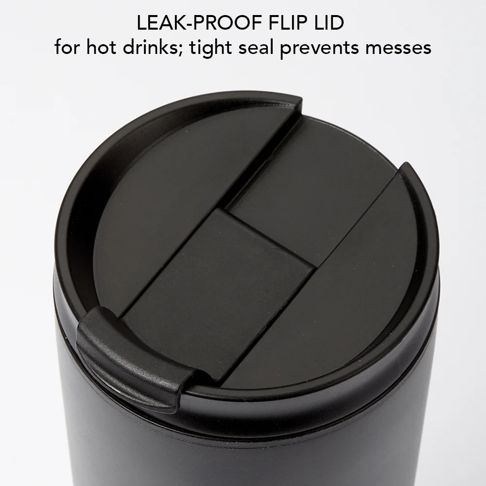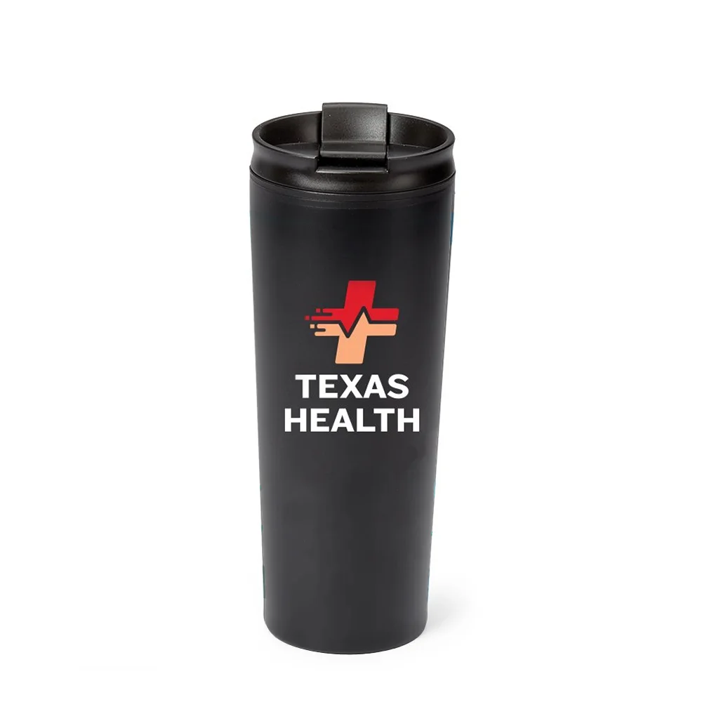 Personalized 24-oz. Tumbler With Dual Lids: Double-wall insulated: stainless-steel exterior and plastic liner maintain temperature for hours; 2 insulated lids: Leak-proof flip lid for hot drinks; Splash-proof straw lid for cold drinks; included straw slides through center; No-slip, no-sweat powder-coat finish; Tapered to fit most car cup holders; Eco friendly; Reusable; BPA free; Note: Hand wash only