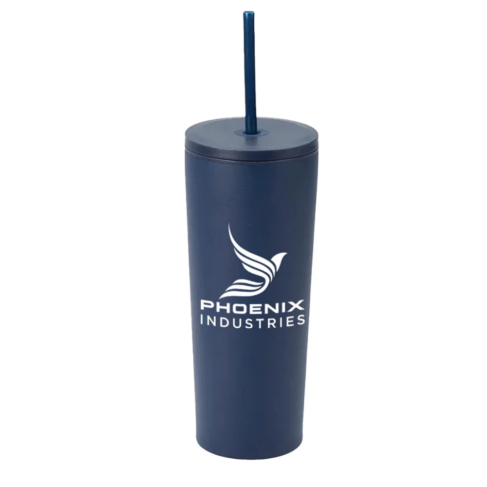 Personalized 24-oz. Tumbler With Dual Lids: Double-wall insulated: stainless-steel exterior and plastic liner maintain temperature for hours; 2 insulated lids: Leak-proof flip lid for hot drinks; Splash-proof straw lid for cold drinks; included straw slides through center; No-slip, no-sweat powder-coat finish; Tapered to fit most car cup holders; Eco friendly; Reusable; BPA free; Note: Hand wash only