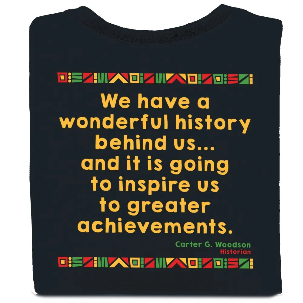 Recipients will proudly wear this T-shirt featuring our exclusive Black History Is American History design on front and a quotation on back from historian Carter G. Woodson