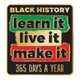 Metal pin with glossy enamel finish features our exclusive, colorful Black History: Learn It, Live It, Make It, 365 Days A Year design