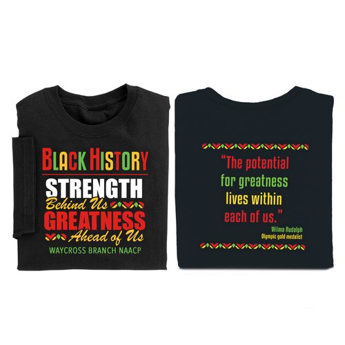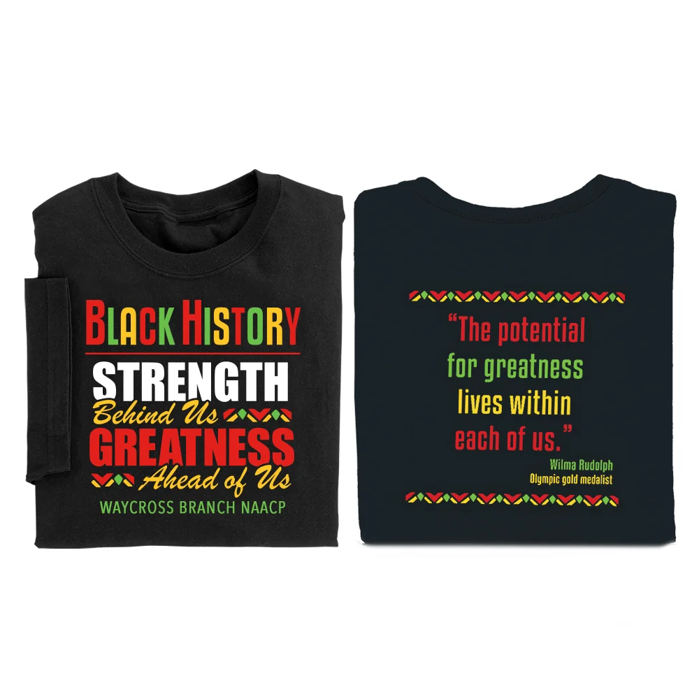 Features our exclusive Black History: Strength Behind Us, Greatness Ahead of Us design on front; Quotation on back from Olympic gold medalist Wilma Rudolph