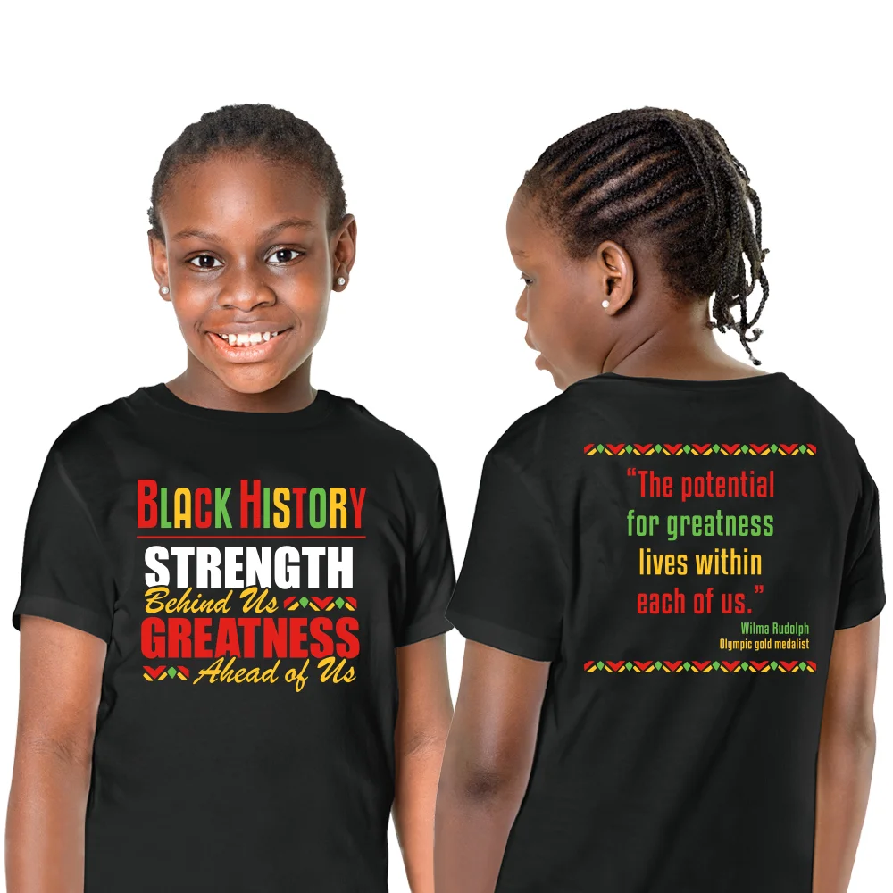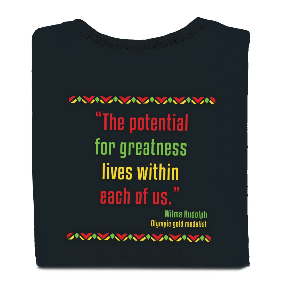Features our exclusive Black History: Strength Behind Us, Greatness Ahead of Us design on front; Quotation on back from Olympic gold medalist Wilma Rudolph