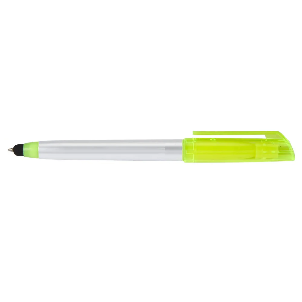 • Twist-action, black-ink ballpoint pen on one end extends and retracts through black stylus tip