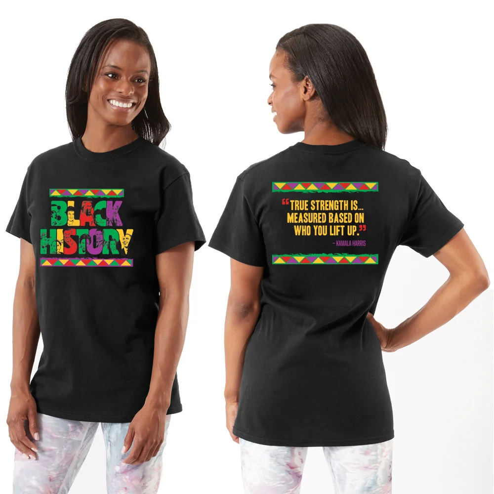 Black History: The Strength of Our Past, the Power of Our Future Adult Unisex 2-Sided Short-Sleeved T-Shirt - Silkscreened Personalization Available