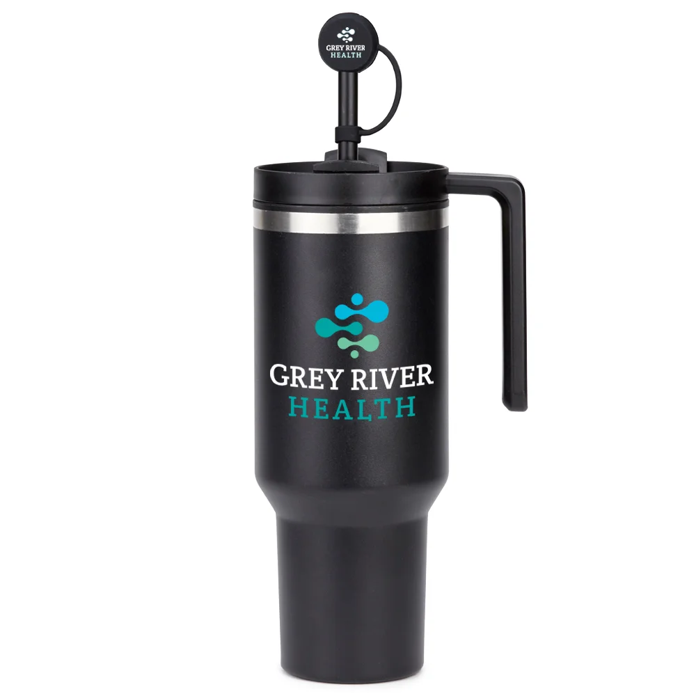 Black Quencher Stainless-Steel/Plastic-Lined Tumbler 40 oz. With Handle & Silicone Straw Topper - Personalization Available