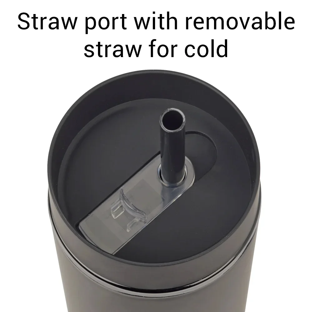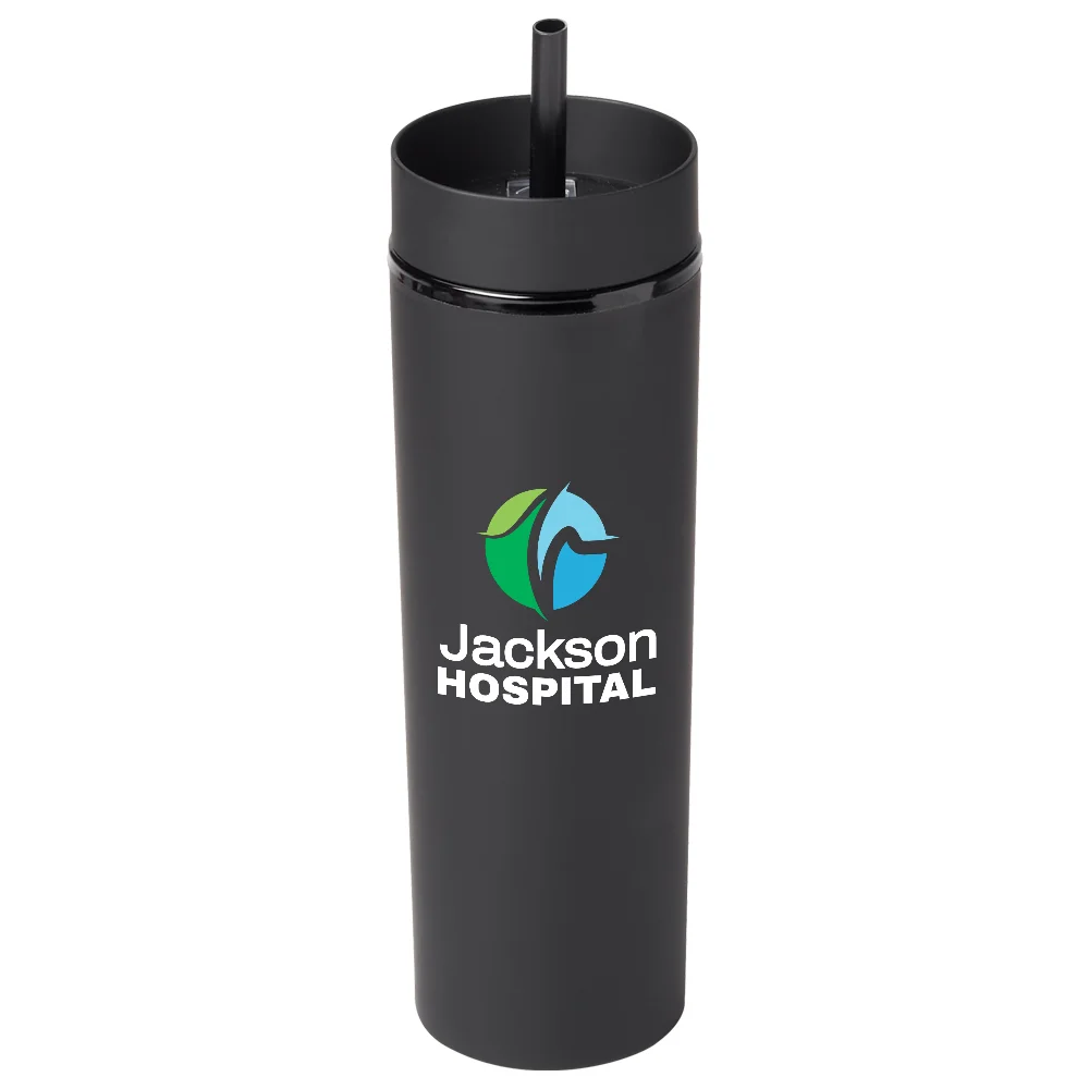 Personalized 16-Oz. Tumbler: Sipping simplified: one lid, two ways to enjoy hot or cold beverages on the go; Double-walled acrylic body with easy-grip, satin, rubberized finish; Screw-on lid with two ways to sip: slide lid opening for hot drinks & straw port opening for cold drinks; Reusable soft straw included; Slips through straw port; Stopper on end prevents spills and keeps it in place; Eco friendly; Reusable; BPA free; Gift box included; Note: Hand wash recommended