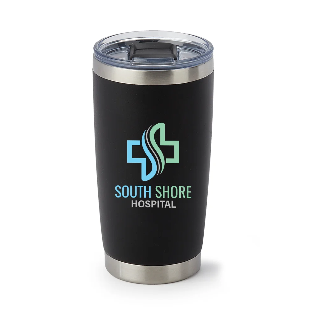 Personalized 20-oz. Tumbler: Double-walled, quality 18/8 stainless steel; Vacuum insulated to keep drinks cold for 12 hours and hot for 8 hours; Durable, non-slip, sweat-free, powder-coated finish; Spill/splash-resistant, slide-lock lid with slot for straw (note: straw not included); Tapered base fits in most cup holders; Eco friendly; Reusable; BPA free; Note: Hand wash only