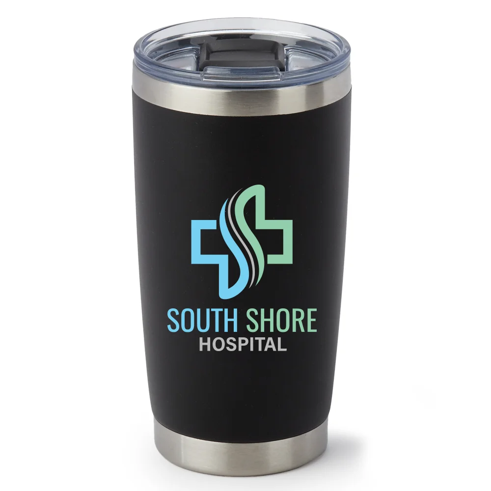Personalized 20-oz. Tumbler: Double-walled, quality 18/8 stainless steel; Vacuum insulated to keep drinks cold for 12 hours and hot for 8 hours; Durable, non-slip, sweat-free, powder-coated finish; Spill/splash-resistant, slide-lock lid with slot for straw (note: straw not included); Tapered base fits in most cup holders; Eco friendly; Reusable; BPA free; Note: Hand wash only