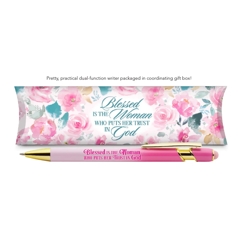 Blessed Is the Woman Who Puts Her Trust in God Pink Ombre Stylus Pen