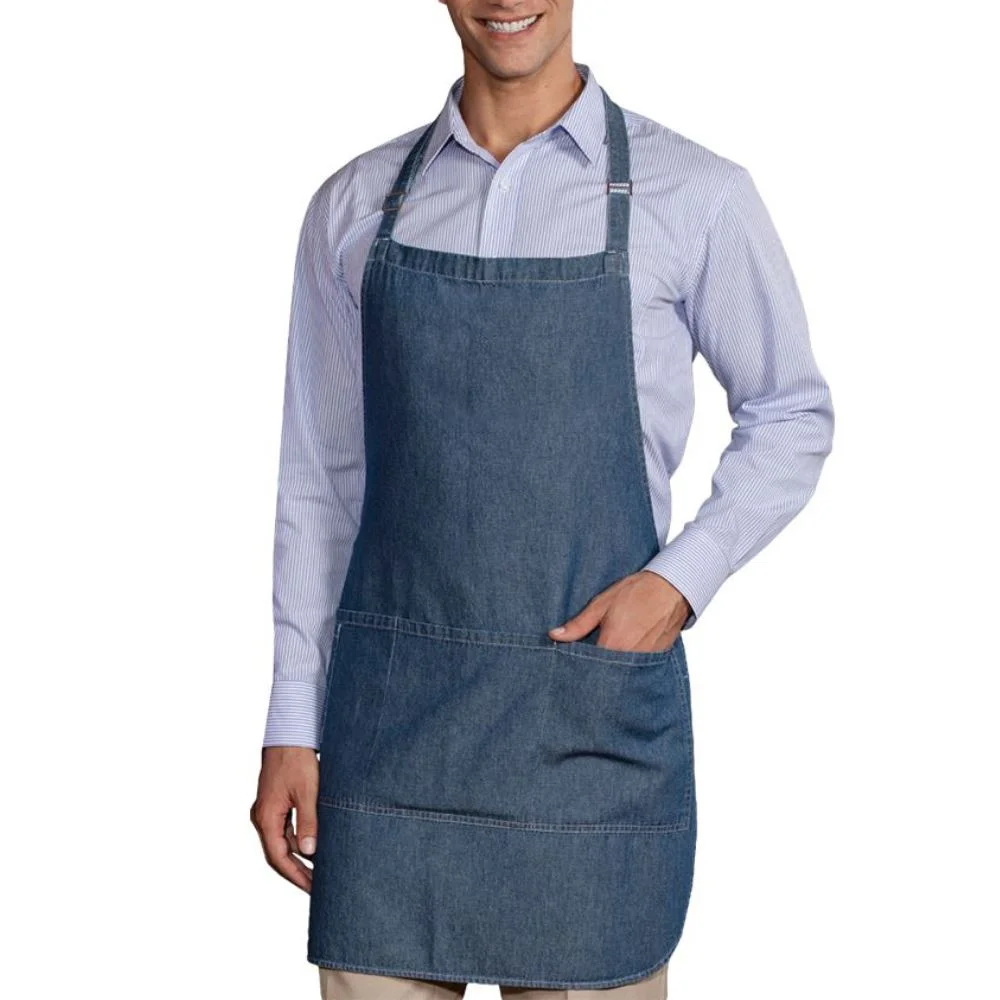 Ideal for cooks, barbers, gardeners and much more, this thigh-length 100% cotton denim bib apron is a fashionable work accessory that will help keep your clothes clean and free of debris
