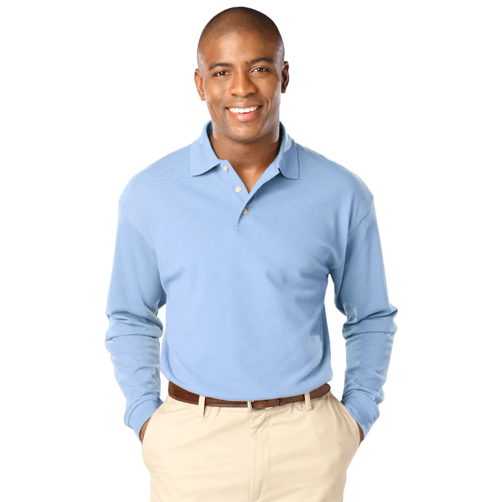 • Make a fashionable impression everywhere from the golf course to the office with this long-sleeved easy-care pique polo.