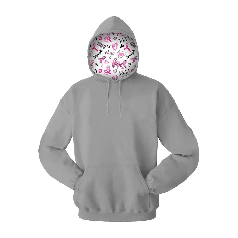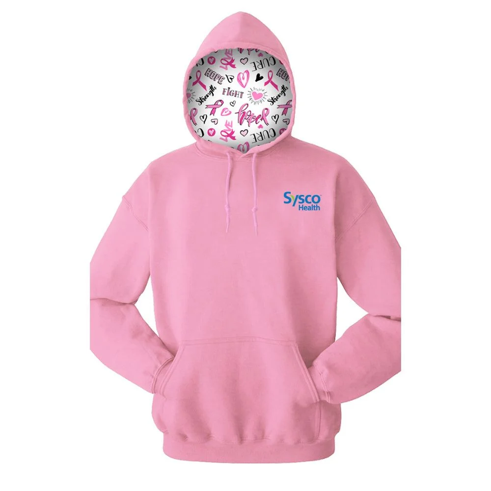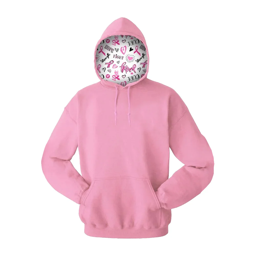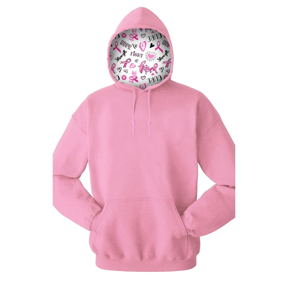 • Cozy sweatshirt with a specially designed Breast Cancer Awareness print sublimated in the hood.