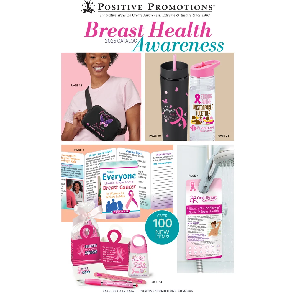 Positive Promotions is proud to help you educate others about breast health and also support patients facing common breast health issues like cancer or routine mammography. Whether you're raising awareness; promoting education, screening, and early detection; or raise money for charity, trust our large selection of promotional products and educational resources dedicated to all things breast health.