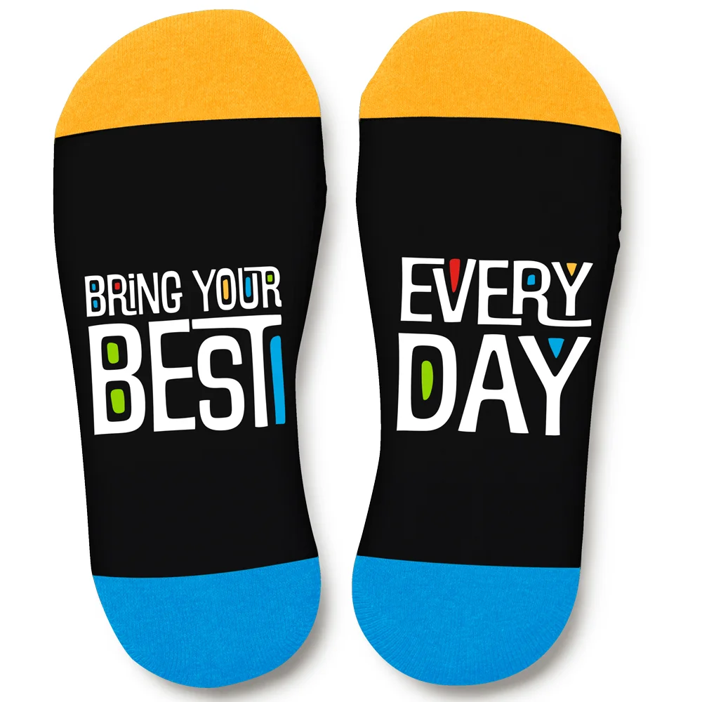 • Socks feature our exclusive Bring Your Best Every Day design that can be read when recipients put up their feet to relax