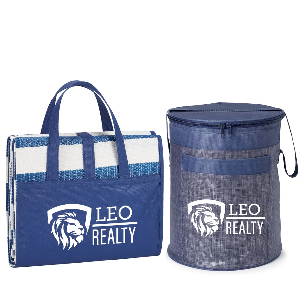 2-piece gift set includes: Brookville Barrel Cooler Bag & Beach Mat