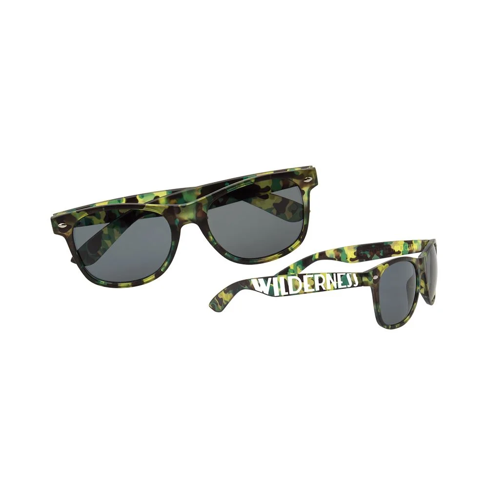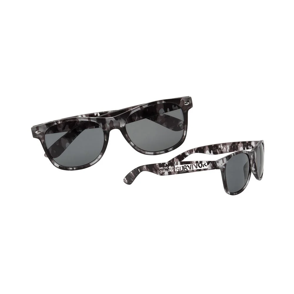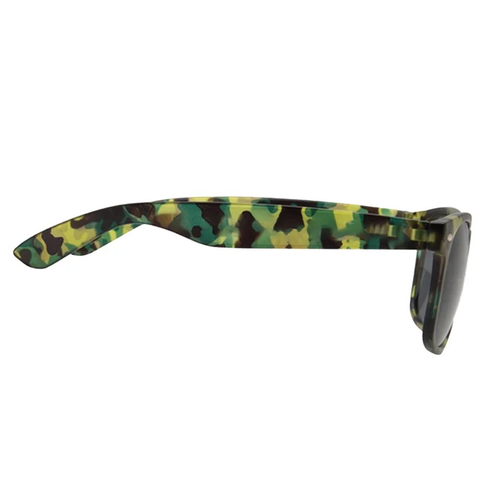 The Camouflage Sunglasses are available in stylish tri-colored frames with 100% UV protecting and shatter-resistant lenses for a classic summertime celebration