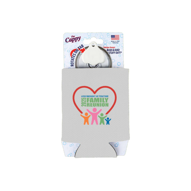 Combo includes a can cooler and a handy cap gadget that transforms any can into a spill-proof container