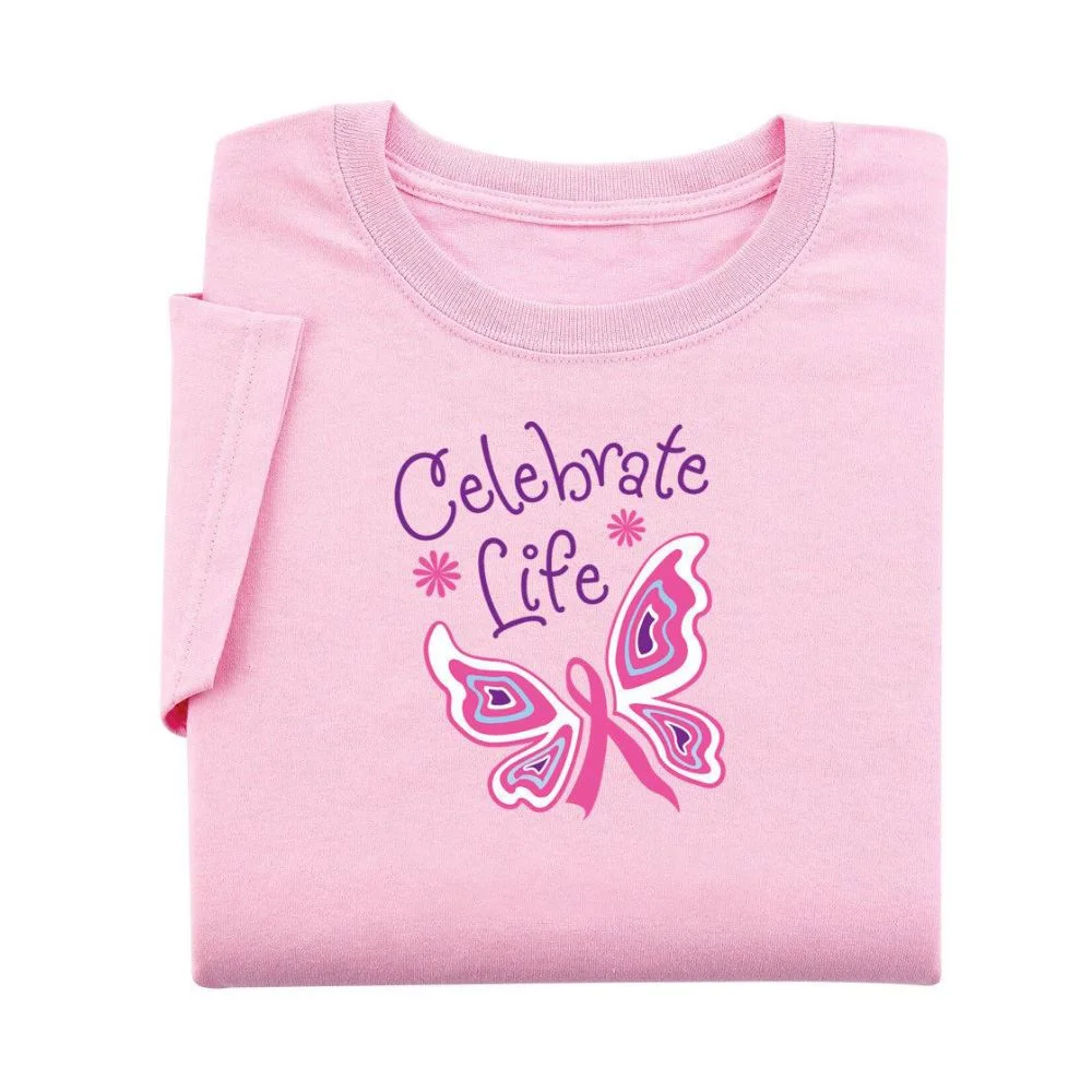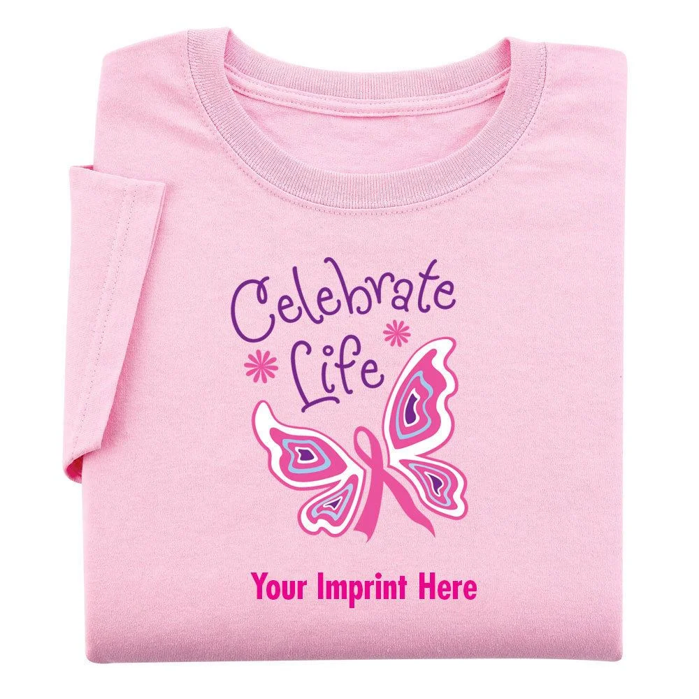 Ladies will appreciate the cotton comfort and feminine details of our pink T-Shirt, including narrower, double needle neckband, sleeve and bottom hem. Include your personalized message on t-shirt. Breast cancer pink merchandise.