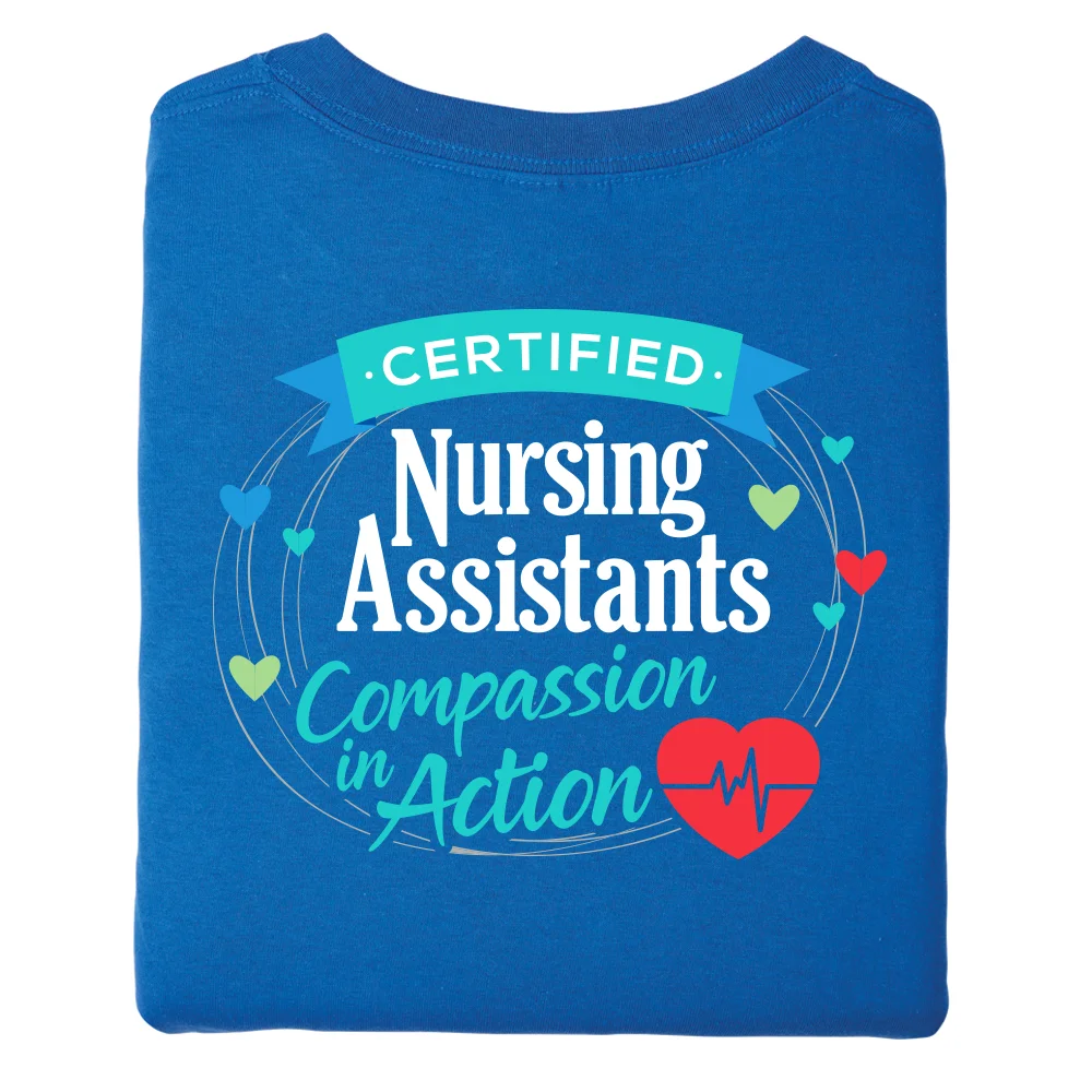 Certified Nursing Assistants: Compassion in Action Unisex 2-Sided Short-Sleeved T-Shirt - Silkscreened Personalization Available