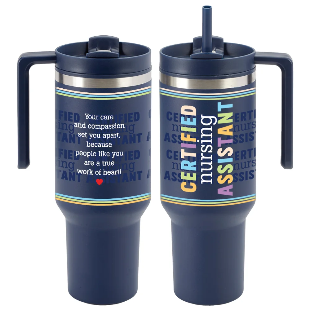 Certified Nursing Assistants Quencher Stainless-Steel/Plastic-Lined Tumbler 40 oz. With Handle
