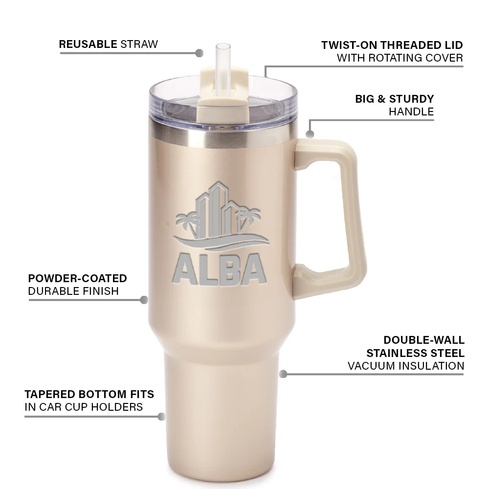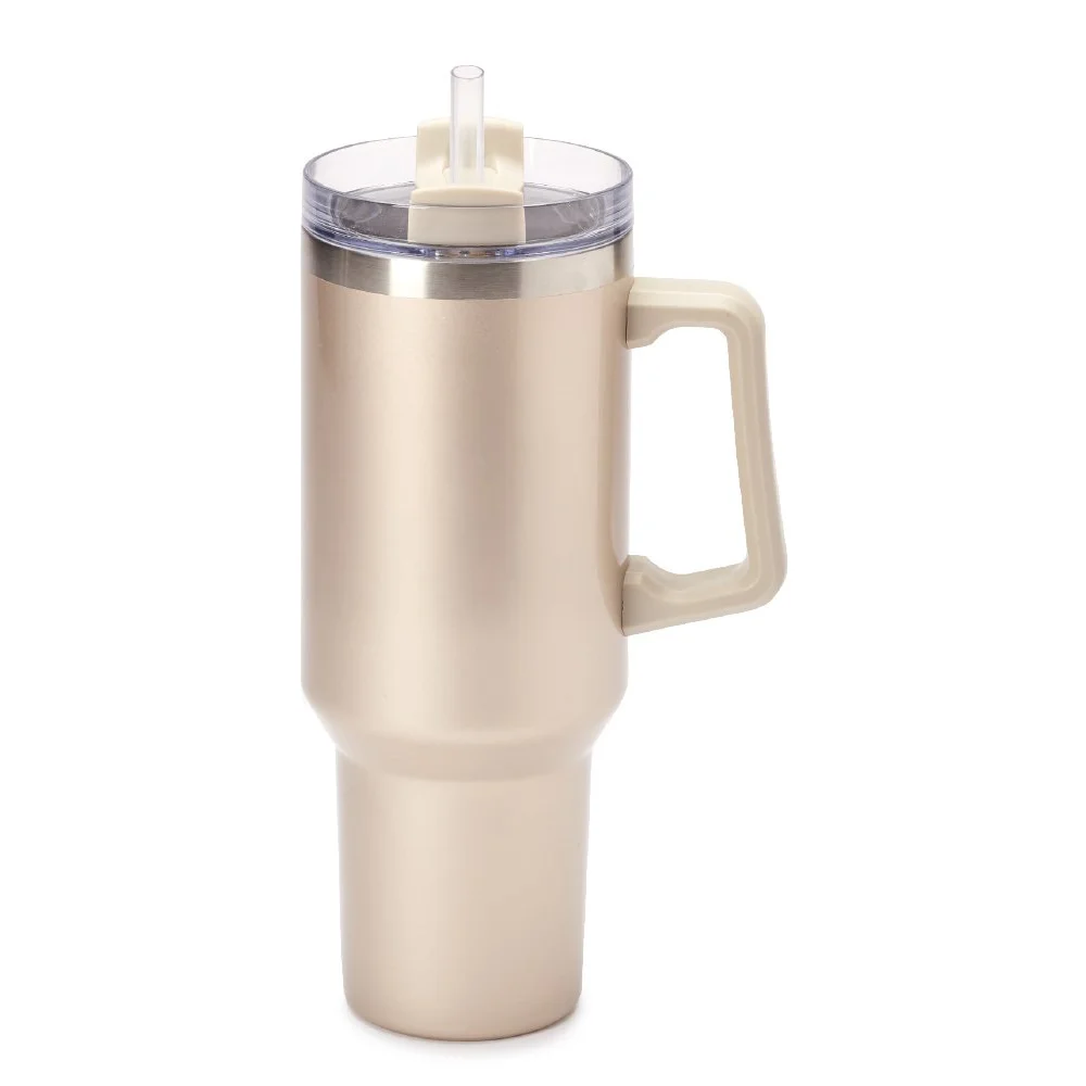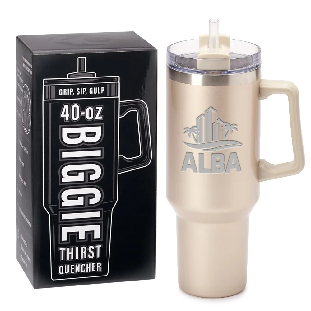 Champagne Biggie Thirst Quencher Double-Wall Stainless-Steel Tumbler 40 oz. With Handle - Laser-Engraved Personalization Available