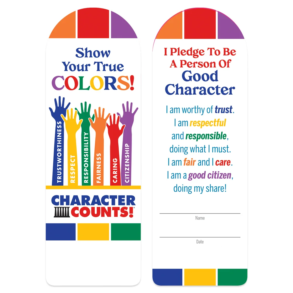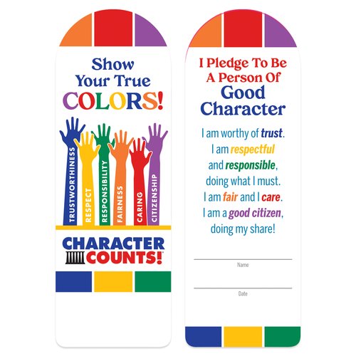 Our exclusive design on front; Back lists positive traits & has space for kids to sign and date, pledging their commitment to be a person of good character