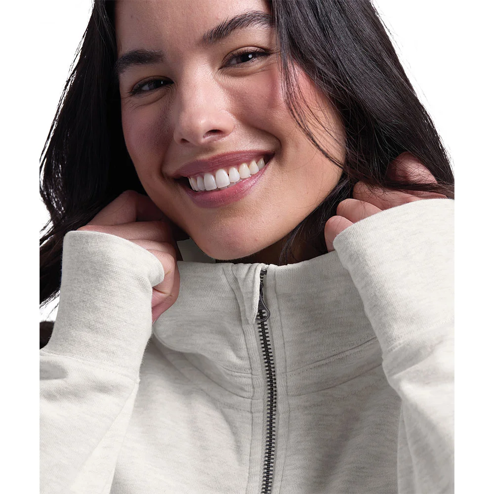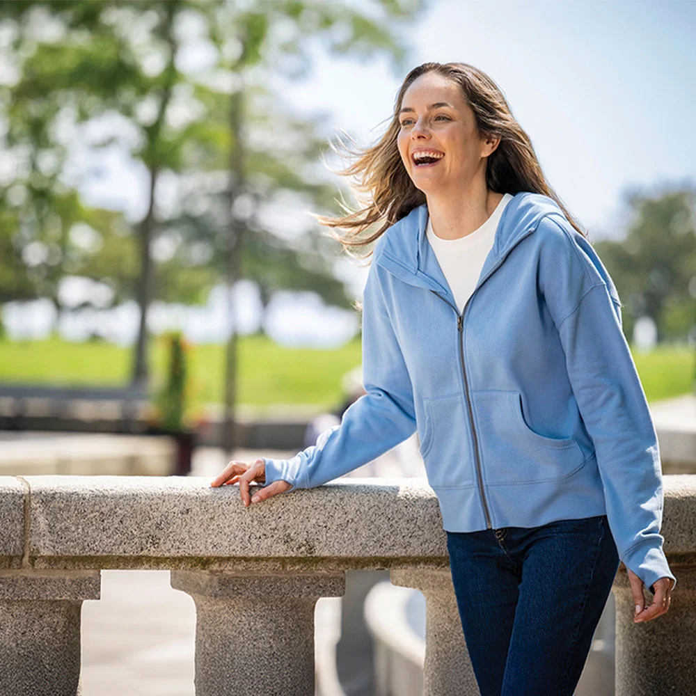 • Eco-conscious full-zip sweatshirt with a relaxed silhouette and a cozy hand feel.