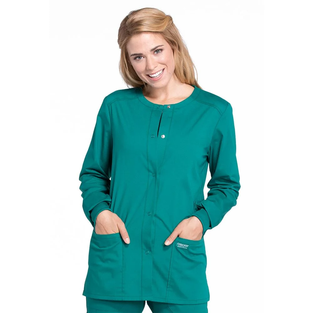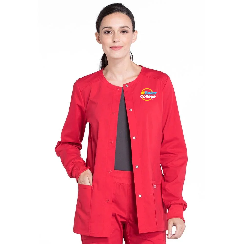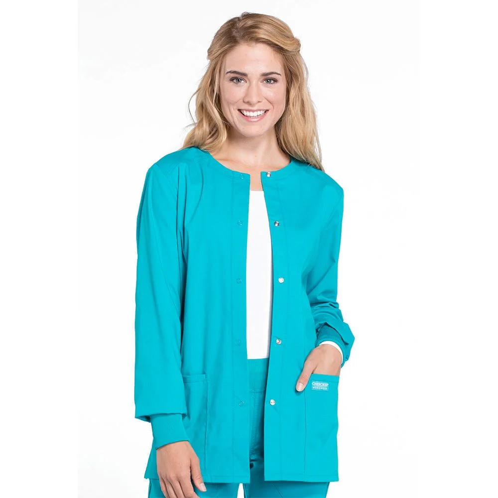 Cherokee® Workwear Professionals Women's 3- Pocket Snap Front Warm-Up Scrub Jacket - Embroidered Personalization Available