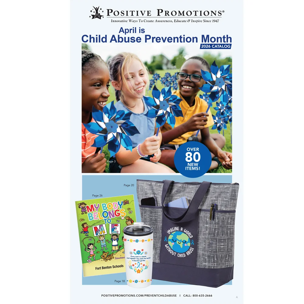 April is Child Abuse Prevention Month. Shop our wide selection of unique and budget-friendly products featuring our exclusive artwork and slogans that are designed to spread awareness, inspire kindness, and educate your community. We offer educational materials for students, parents, and teachers, and our personalized items put your name, logo, or positive sentiments on display. Plus, check out our collection of themed T-shirts and other apparel, perfect for school assemblies, awareness events, and more!
