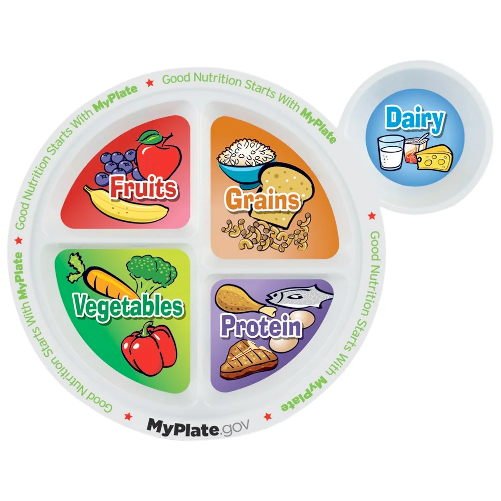 MyPlate: Makes it simple for little ones to understand how to eat healthy by including major food groups at meals; Separate dairy section for a cup or yogurt container; Proportioned especially for children; Redesigned English-language plate is made of durable plastic and is dishwasher safe; Eco friendly; Reusable; BPA free