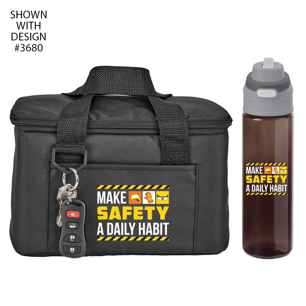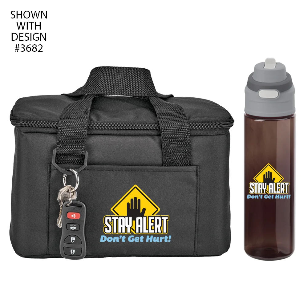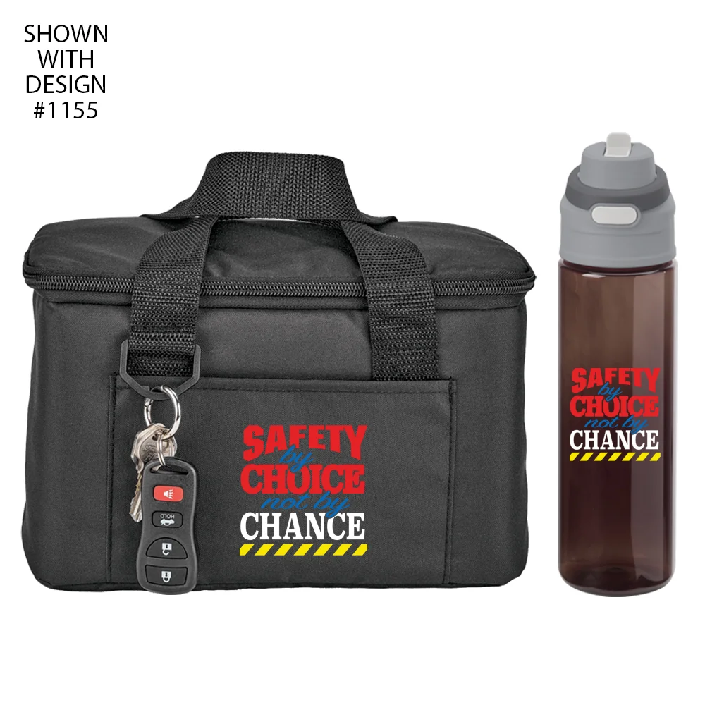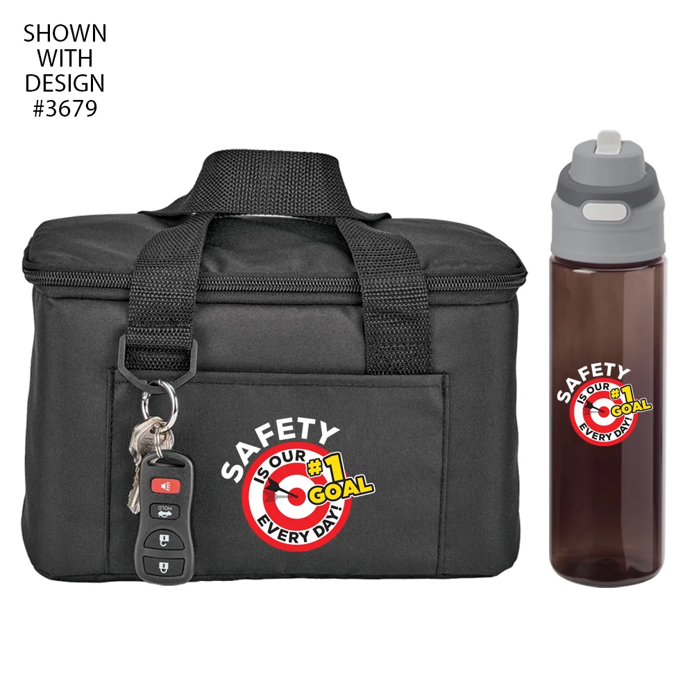 Workplace Safety Black Chill Box 6-Can Insulated RPET Lunch/Cooler Bag & Sip-N-Chug Dual Sip Water Bottle 28-oz.