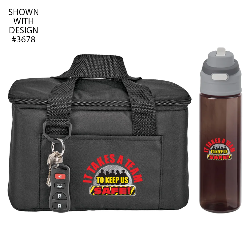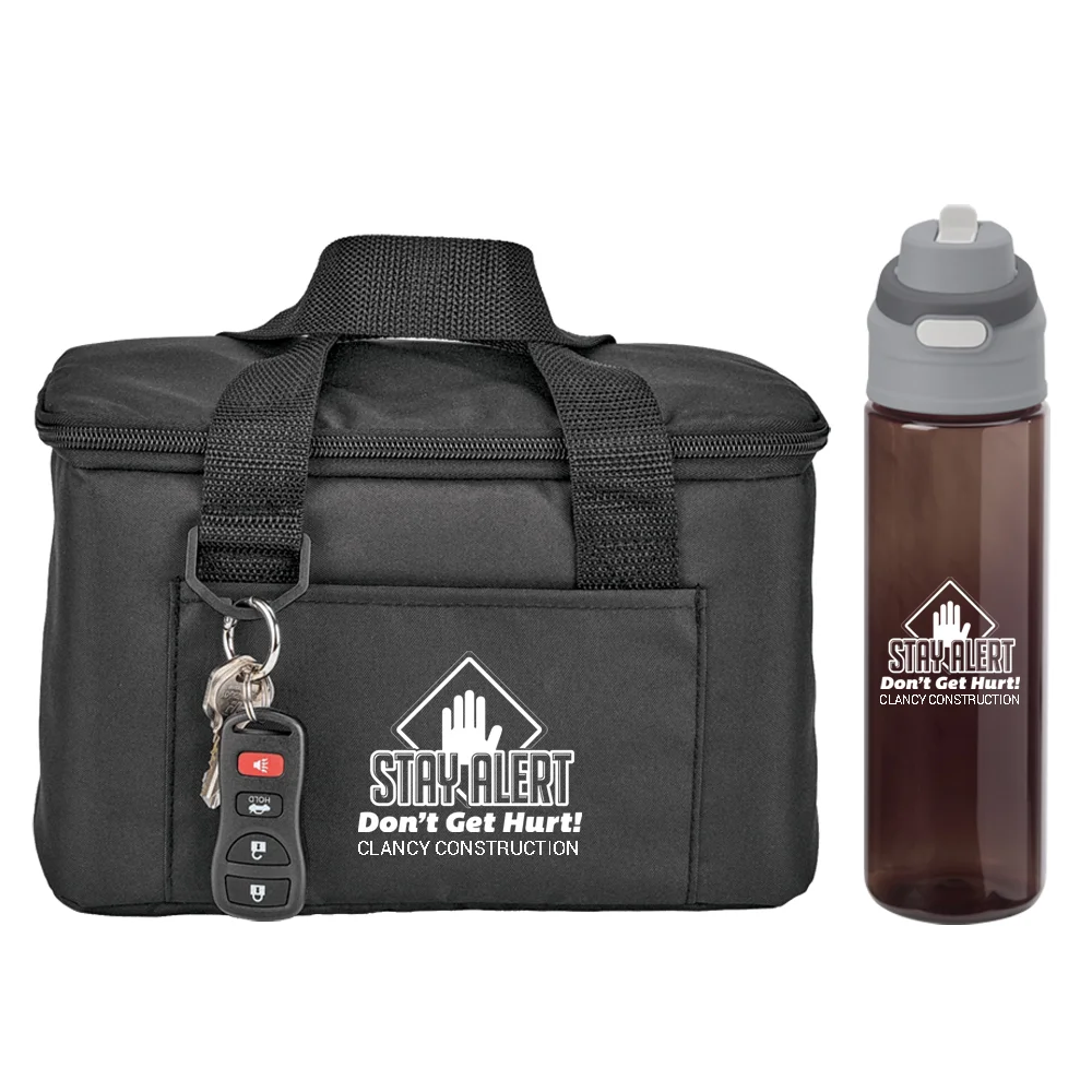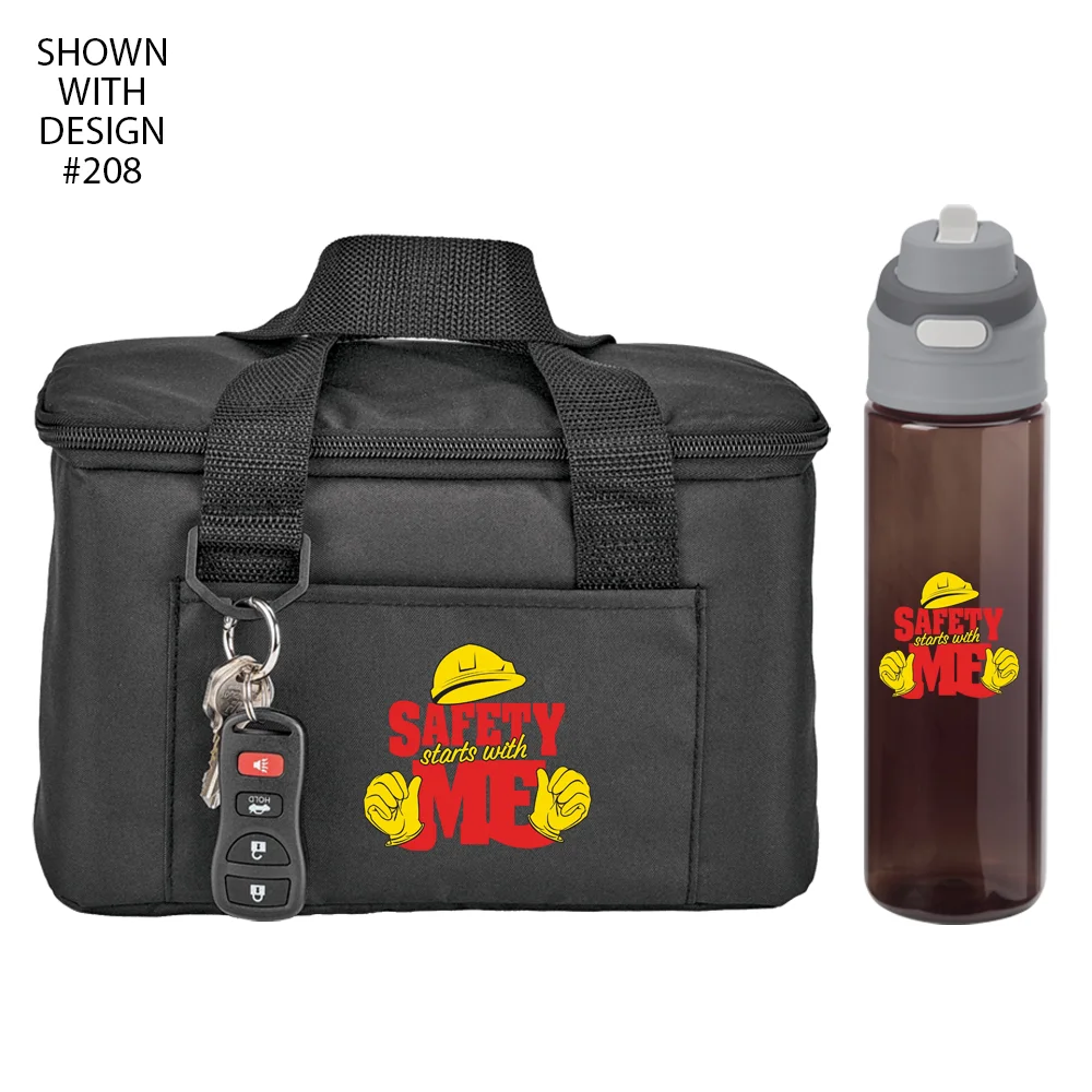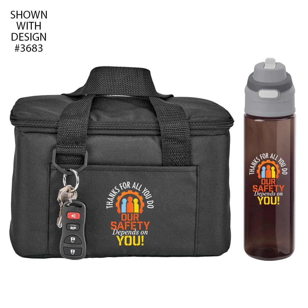 Workplace Safety Black Chill Box 6-Can Insulated RPET Lunch/Cooler Bag & Sip-N-Chug Dual Sip Water Bottle 28-oz.