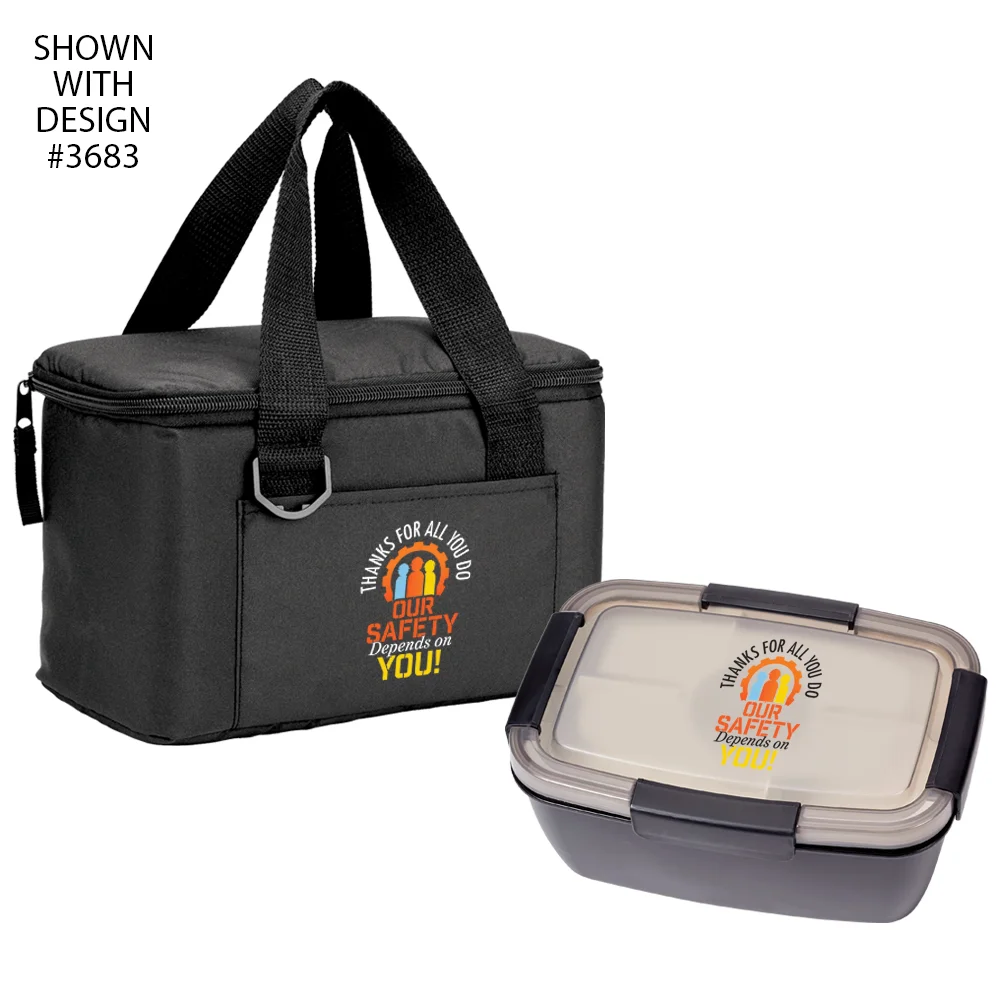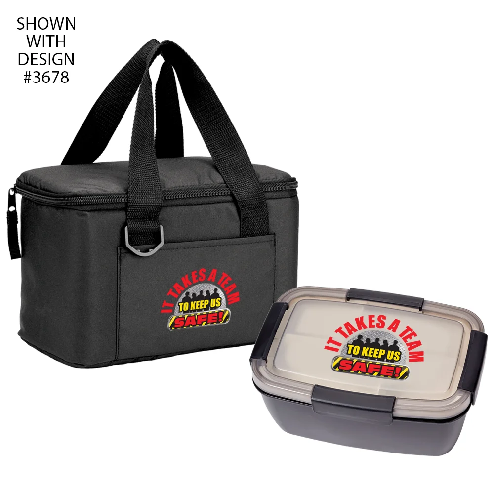 Lunch/Cooler Bag: 4 1/4" X 2 1/4"; Food Container: 2 3/4" X, 2 3/4", Up To 5 Lines Or Logo; 25 Characters Per Line