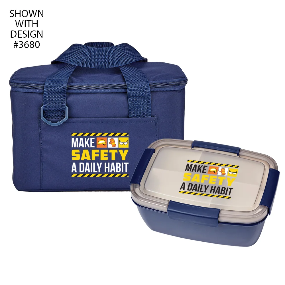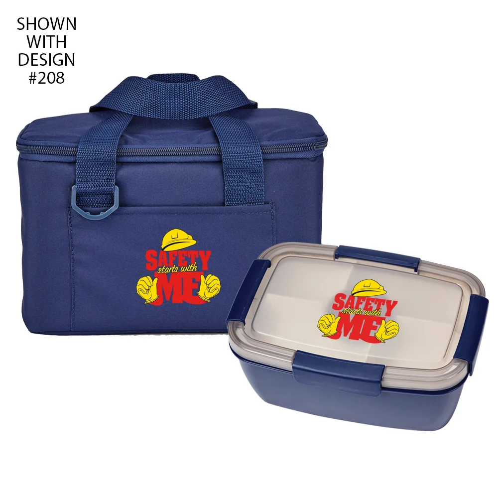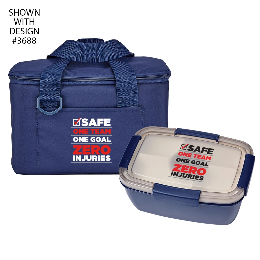 *Workplace Safety Navy Chill Box 6-Can Lunch Bag & Navy Locking Stacker Container