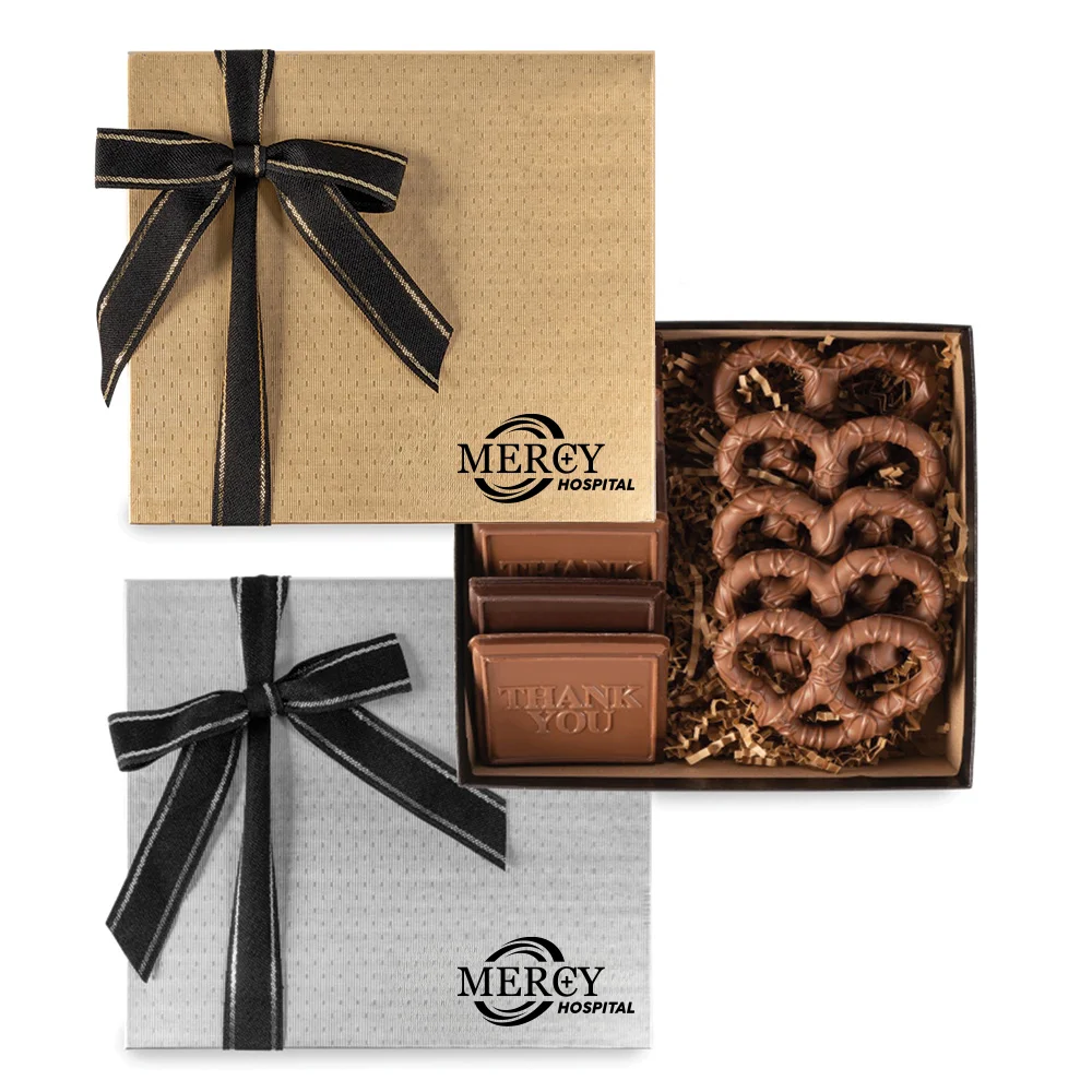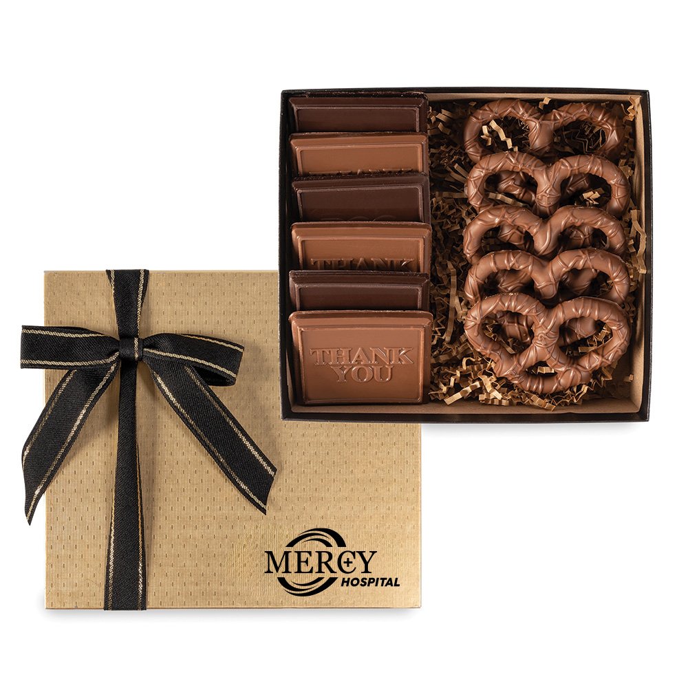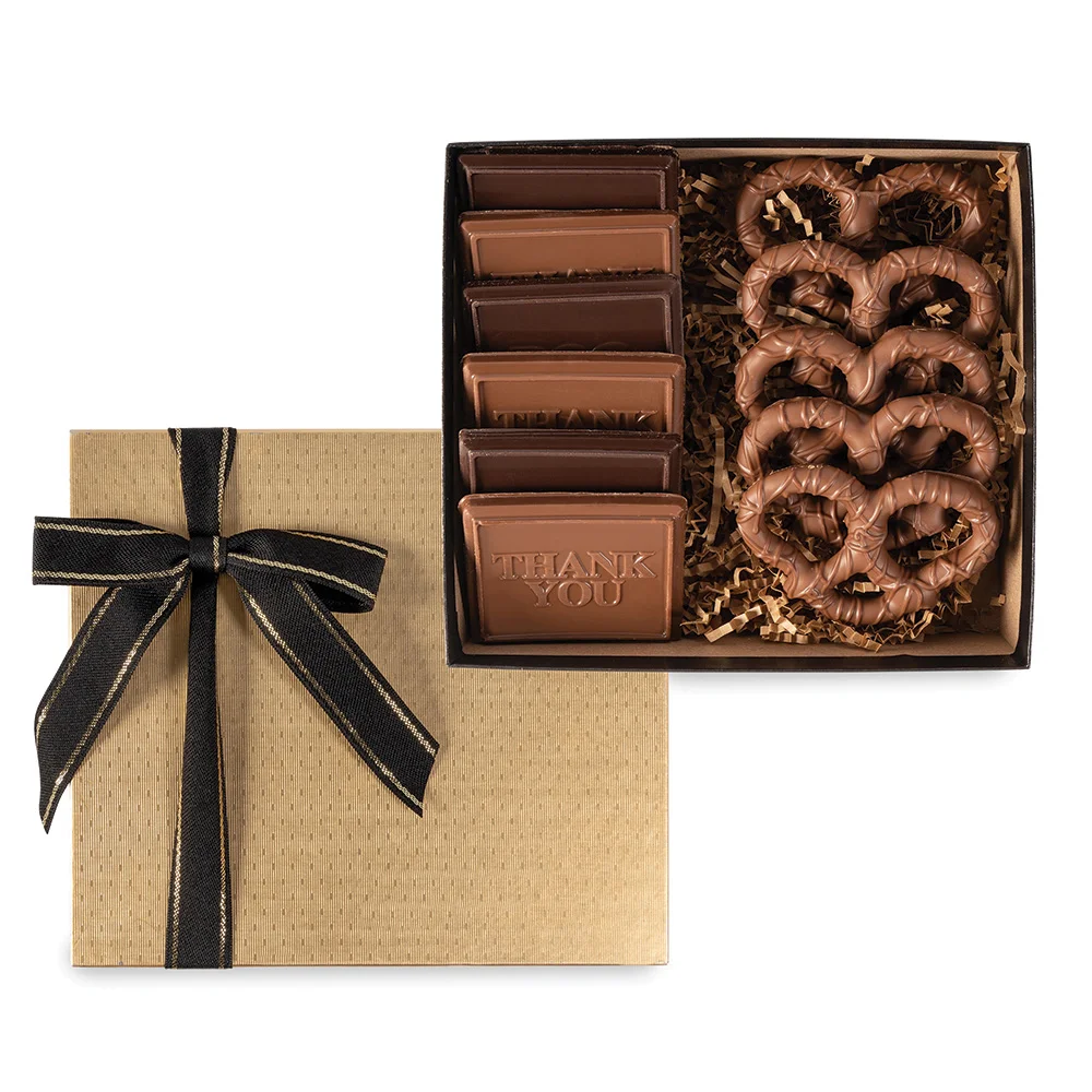Chocolate Cookies & Pretzels Gift Box - One-Color Personalization Available