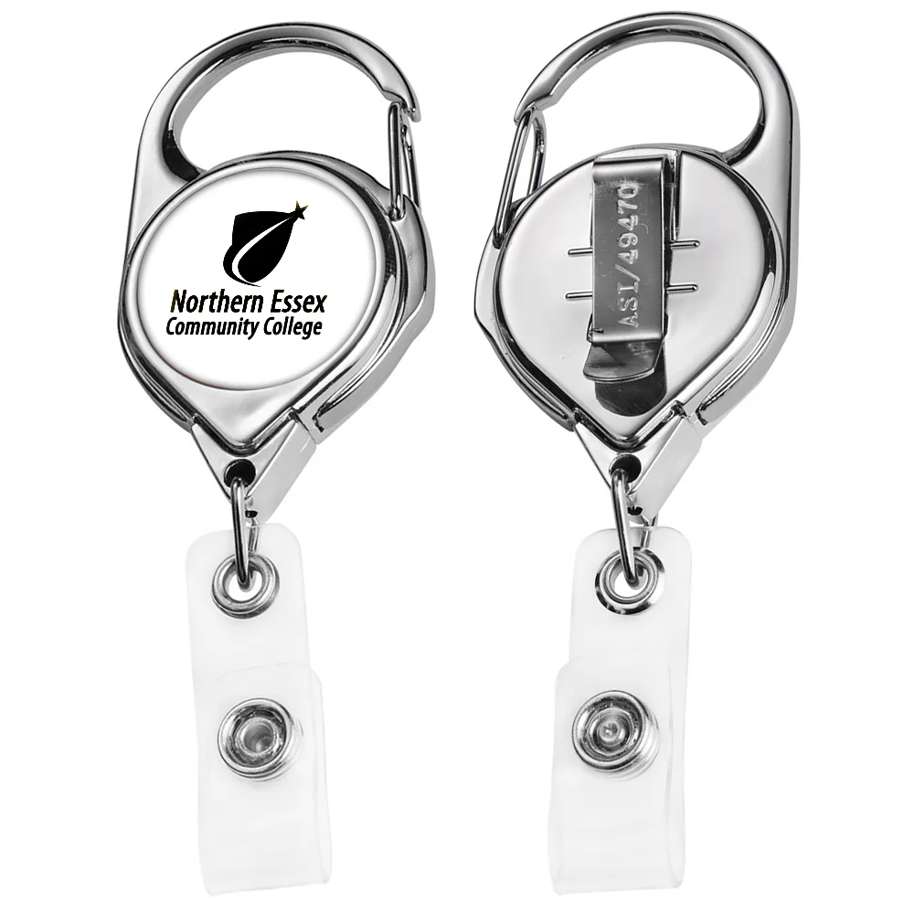 Chrome Carabiner Badge Reel With Belt Clip - Personalization Available