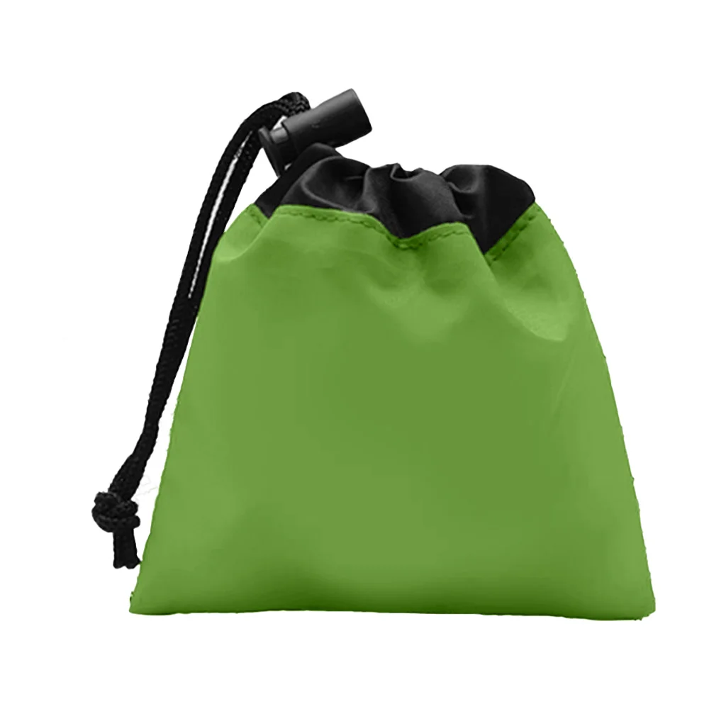 Brightly colored polyester drawstring bag - compact and excellent for trade show giveaways & Contains six latex-free adhesive bandages, two antiseptic towelettes, large bandage, one triple antibiotic ointment packet, first aid guide