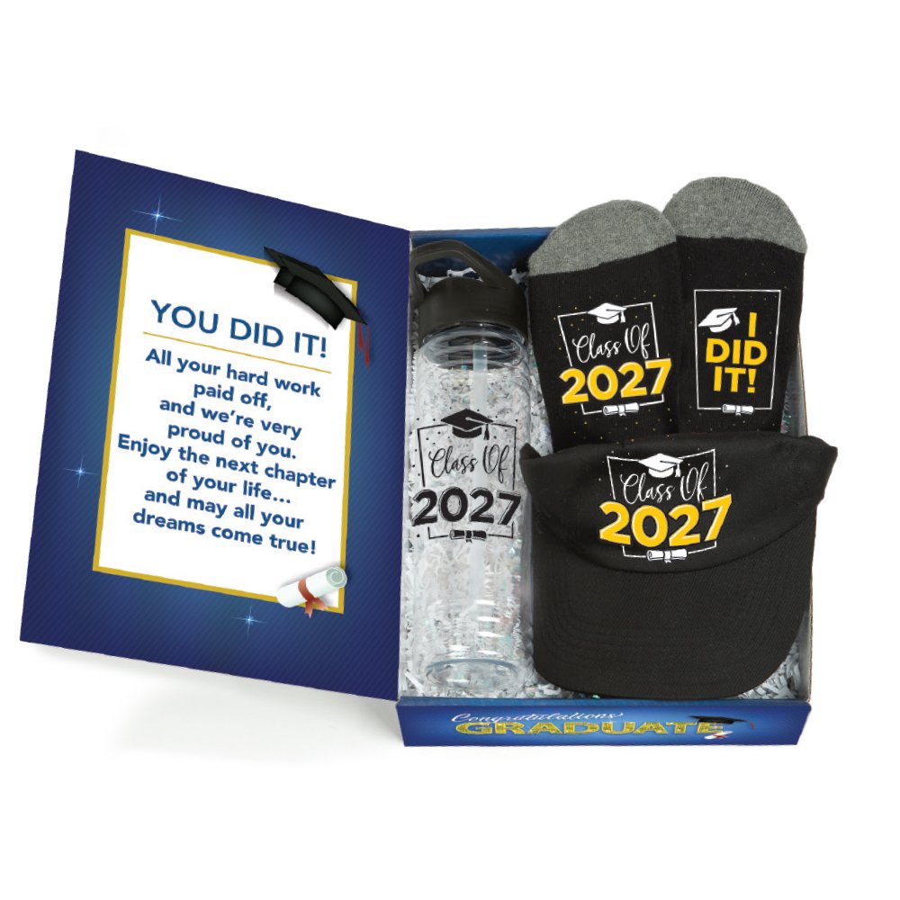 • Graduates will appreciate this ready-to-go gift that includes: Solara Water Bottle; "Toe"-tally Awesome Ankle Socks; Baseball Cap