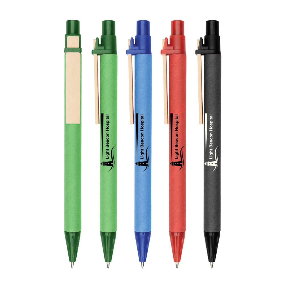 Colored Paper Barrel Pen With Wooden Clip - One-Color Personalization Available