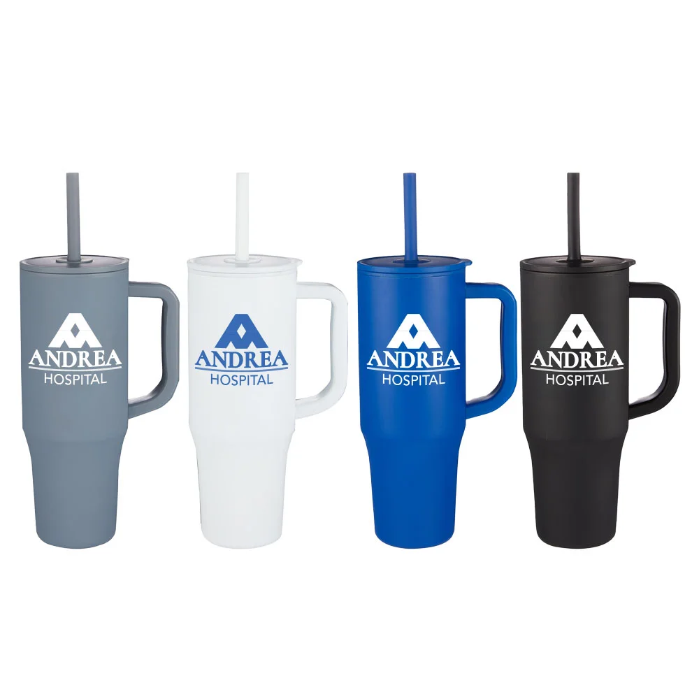 ColossalChill Stainless-Steel Matte Outer/Recycled Plastic Inner Tumbler 30 oz. With Straw & Handle - One-Color Personalization Available