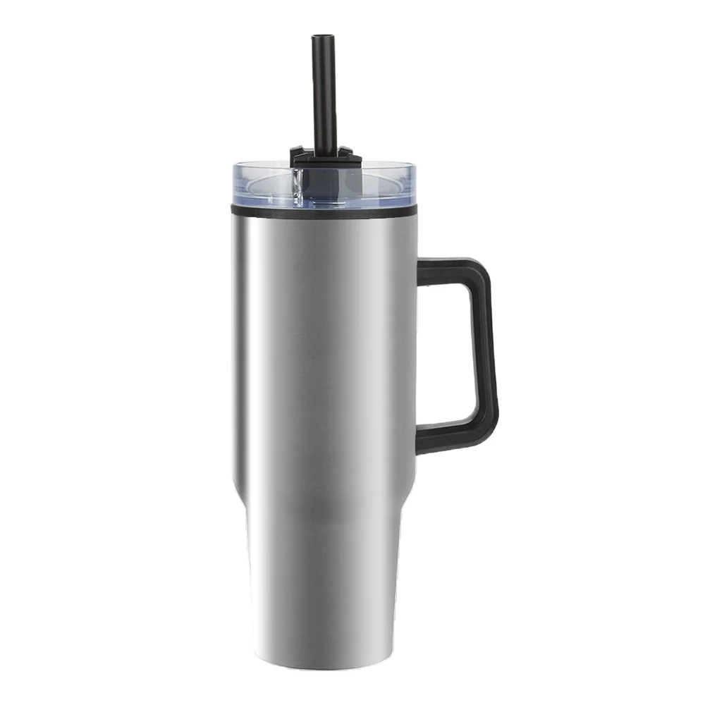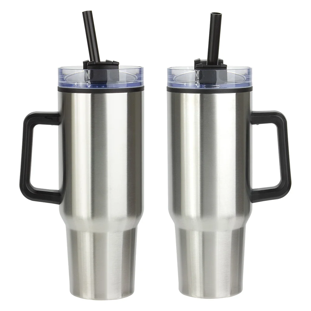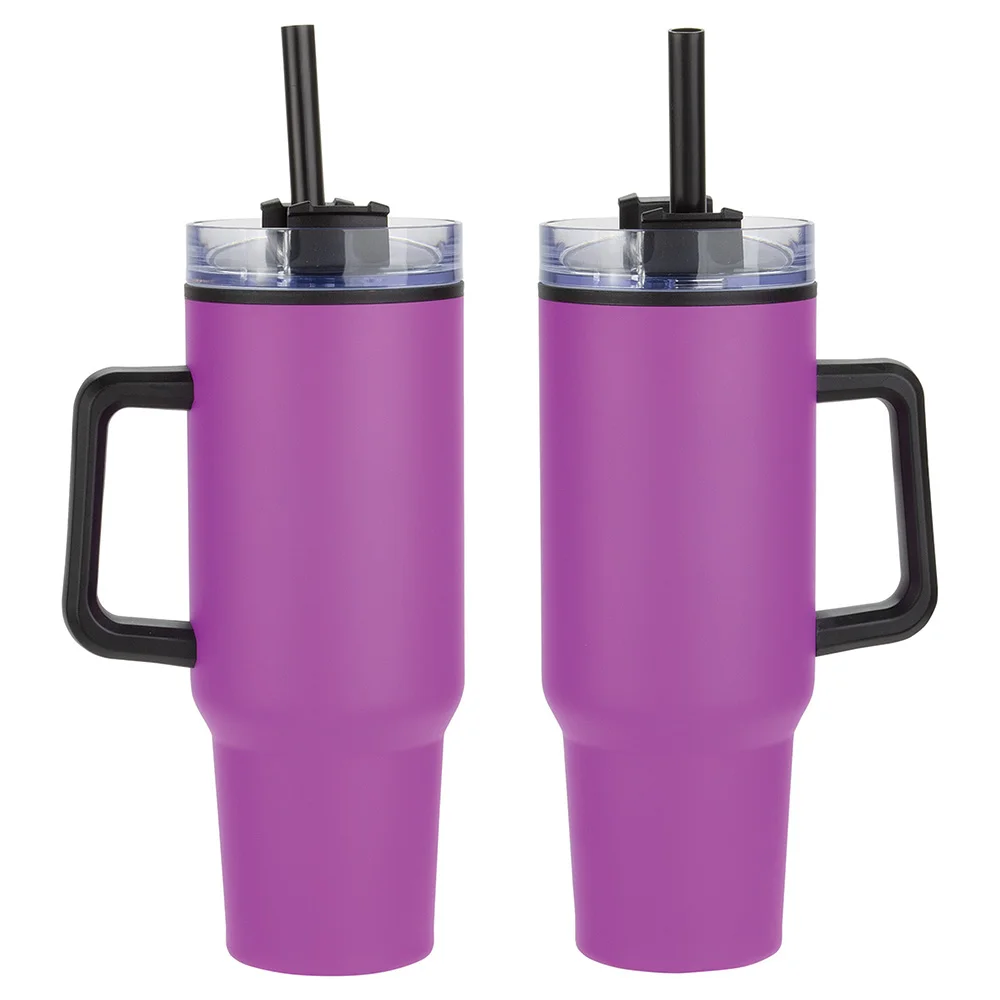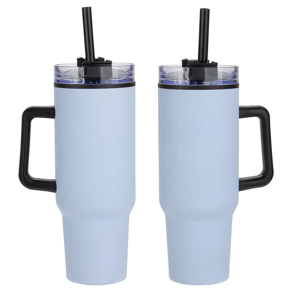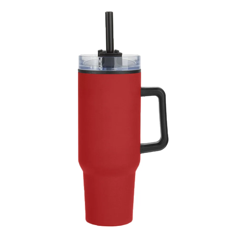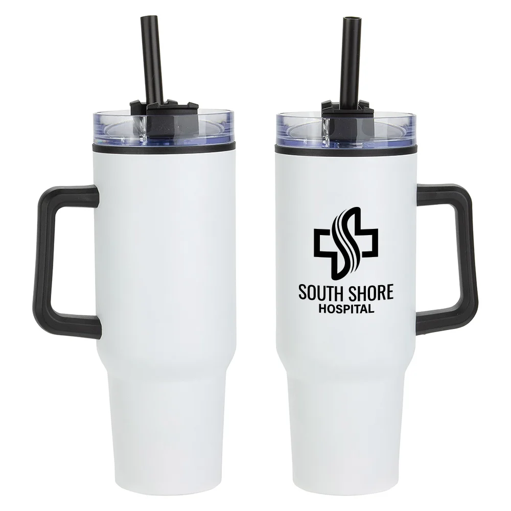 Flip Straw Stainless-Steel/Plastic-Lined Tumbler 30 oz. With Top Carry Handle - One-Color Personalization Available