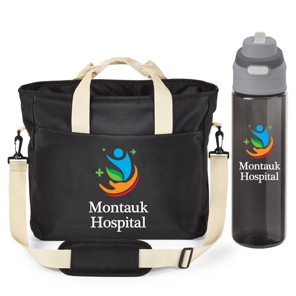 2-piece gift set includes: Mercer 17" Computer/Laptop Tote Messenger Bag With Trolley Strap & Tritan™ Dual-Sip Water Bottle 28 oz. With Carry Handle