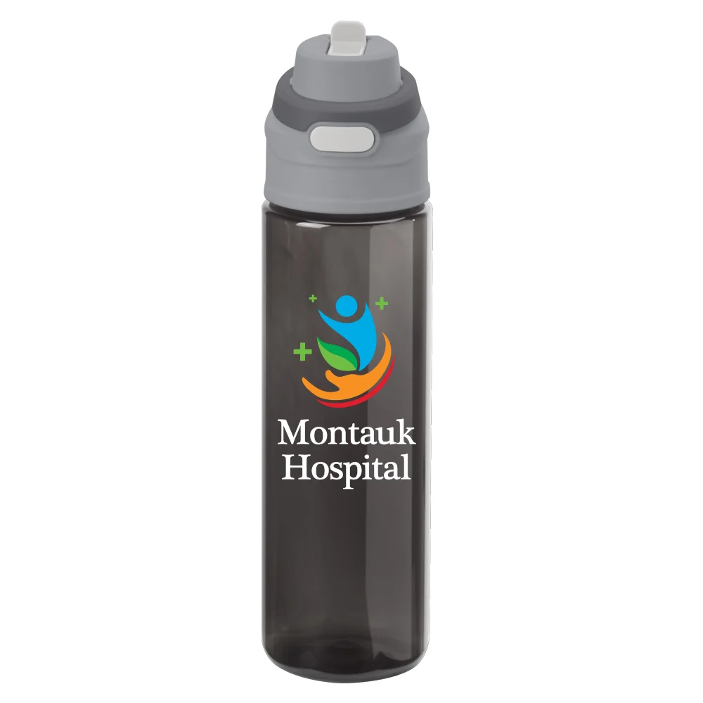 28-oz. Water Bottle: Dual-function, push-button, spill-proof locking lid; Sip: flip up built-in spout to sip through internal straw; Chug: push button to unlock lid and access the wide opening; Extra-wide mouth for easy filling and cleaning; Easy-carry loop built into lid; Tough, impact-resistant, and shatter-resistant Tritan™; Eco friendly; Reusable; BPA free; Note: Hand wash recommended