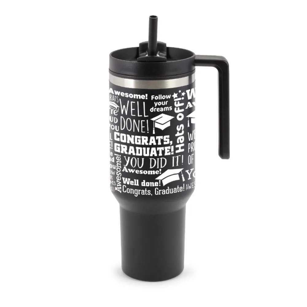 Congrats, Graduate! Word Cloud Black Quencher Stainless-Steel/Plastic-Lined Tumbler 40 oz. With Handle