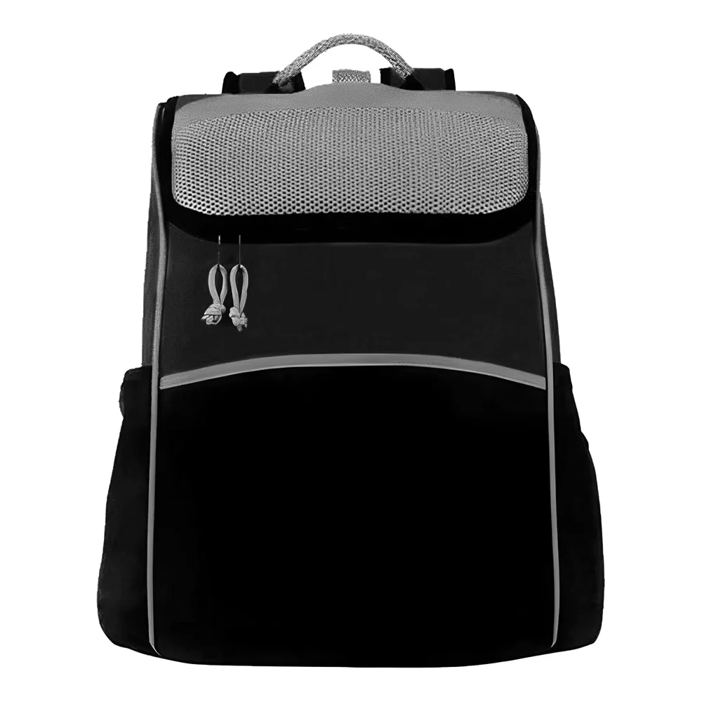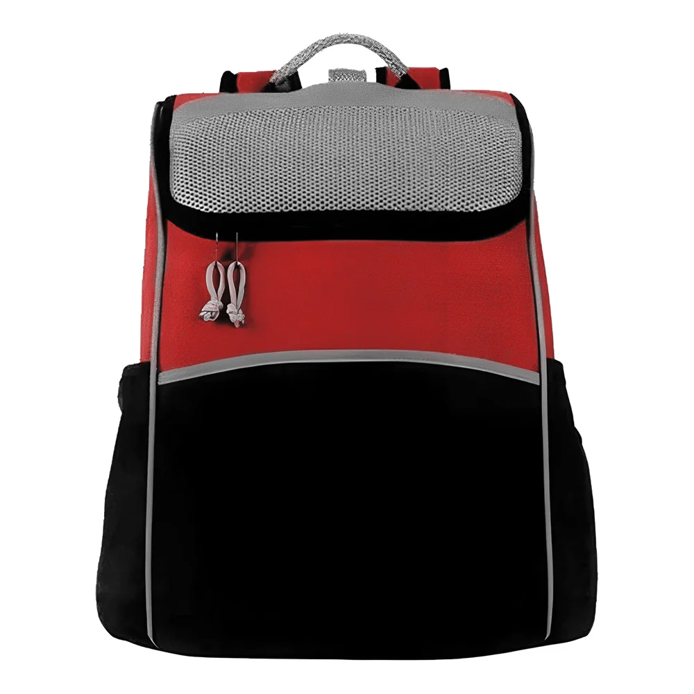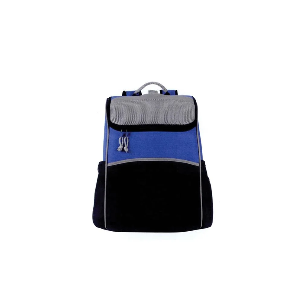 Top open sponge mesh pocket with a Velcro closure and open front pocket and two side open pockets, all with a comfortable padded and adjustable back strap