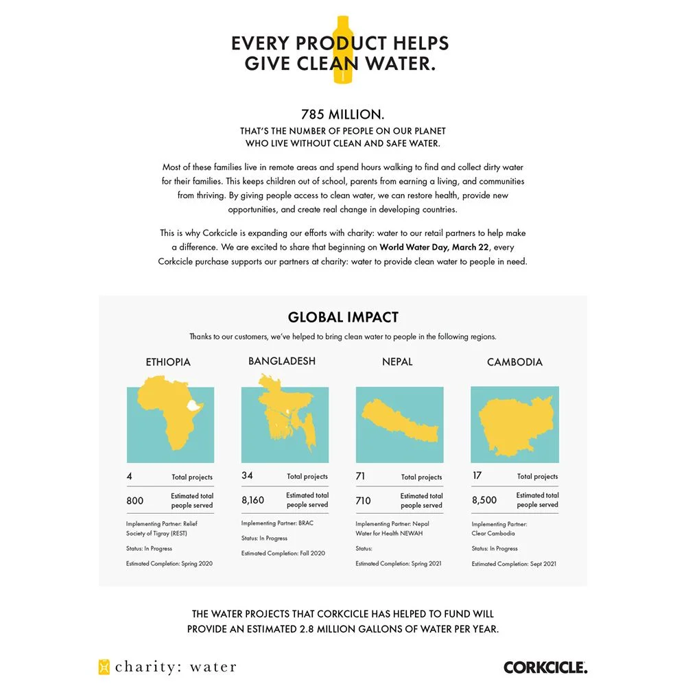 • Every Corkcicle® purchase helps bring clean water to people in need through their partnership with charity